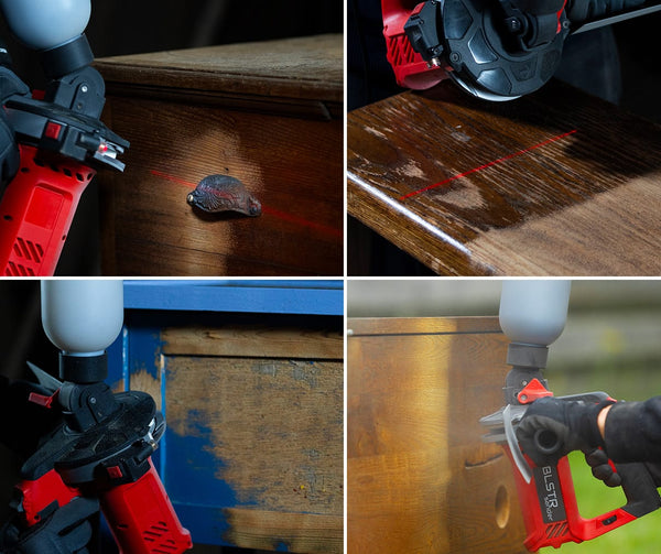 BLSTR is particularly suitable for removing paint, coatings, rust, and weathered layers, as well as for preparing surfaces before refinishing. It performs best on detailed, uneven, or structured surfaces where sandpaper struggles to reach consistently.